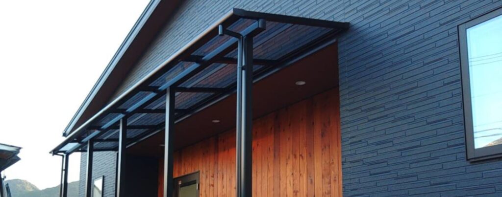 スピーネ 1.0間 6尺 オータムブラウン 入隅納まり 施工前 施工後 テラス屋根スピーネを玄関に取り付けることで、日除けや雨風の侵入を防ぐことができます。 スピーネの特長 毎日の暮らしの中で感じる困りごと。テラスがあれば、お悩みを解決することが可能...