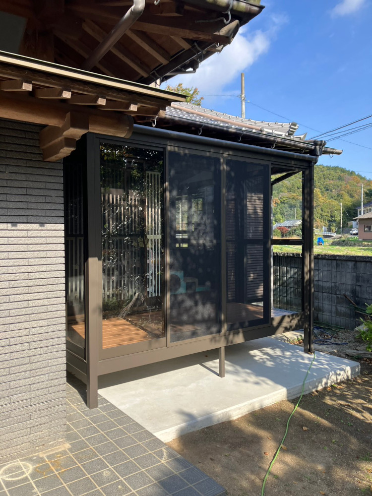 土間コンクリート部分に、生活に便利なテラス囲いを施工しました。様々な用途に使用できる空間が出来ました。